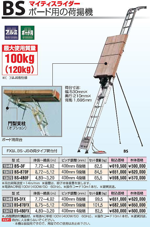 ハセガワ HASEGAWA アルミ製ボード用荷揚機BS-870FX JS型価格: 532,350円レビュー評価: 0.0 レビュー数:0 ※こちらの商品はお支払い方法で「代金引換」は選択できません。 クレジットカード、郵便振替又は銀行振込でご注文下さい。 長谷川工業株式社の製品一覧 脚立・踏み台・三脚 はしご 足場台 作業台 足場板 アルミブリッジ 運搬台車 荷揚機 土木関連 園芸関連 注1) 当店ではハセガワの商品は1シリーズにつき同一の画像を使用しております。従ってはしご、脚立等品番によっては 画像と商品が違う場合がございますがご了承下さい。またすべて商品優先となりますので、寸法等よくご確認してから ご注文下さい。 注2) ハセガワの商品は一部の商品を除き全てメーカー、又は問屋直送品となります。そのため代金引換がご利用になれ |